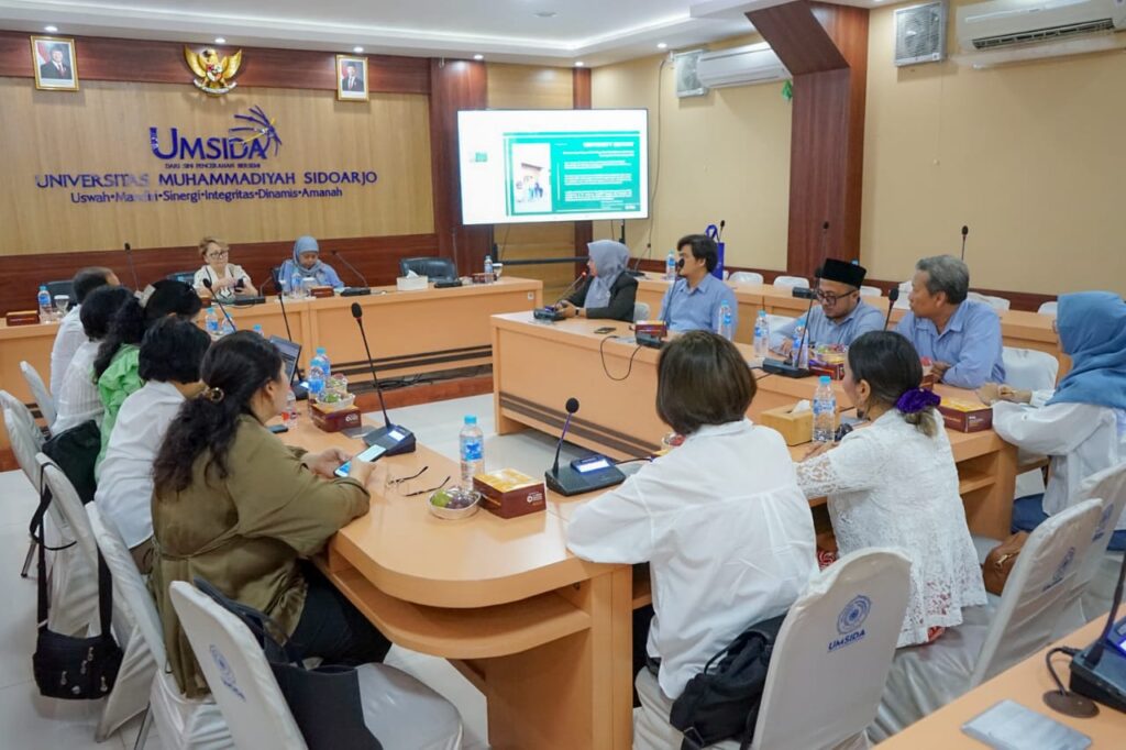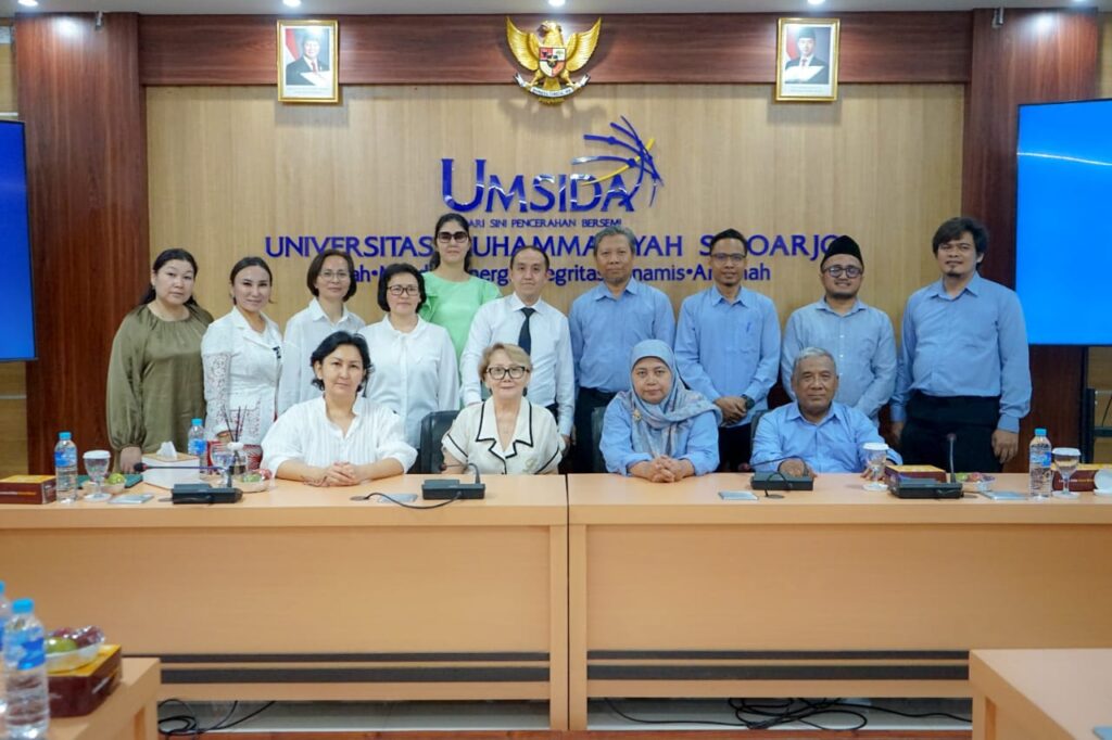 lkui.umsida.ac.id — Universitas Muhammadiyah Sidoarjo (UMSIDA) menerima kunjungan resmi dari Esil University, Kazakhstan, sebagai tindak lanjut dari kerja sama Memorandum of Understanding (MoU) yang telah dijalin sebelumnya. Kegiatan ini berlangsung di ruang rapat Kampus 1 UMSIDA dan dihadiri oleh delapan delegasi dari Esil University yang terdiri atas pimpinan dan mahasiswa. (10/11)
