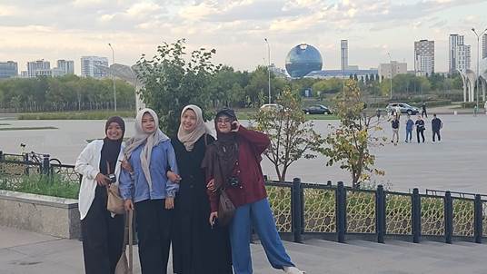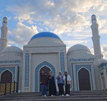Lebih dari sekadar tempat ibadah, Grand Mosque Central Asia juga memainkan peran penting sebagai jembatan budaya. Masjid ini terbuka bagi siapa saja yang ingin mengenal lebih dekat Islam dan budaya Kazakhstan. Kehadiran para wisatawan internasional, termasuk kami, mahasiswa dari Universitas Muhammadiyah Sidoarjo (UMSIDA), melihat bahwa masjid ini telah menjadi titik temu persahabatan antarbangsa. Salah satu mahasiswa, Nur Khalifah menyampaikan, “Masjid ini bukan hanya indah dipandang mata, tetapi juga menenangkan jiwa. Apa lagi Ketika mengikuti pengajian di dalamnya, kami merasa seperti berada di rumah sendiri, meski jauh dari tanah air. Suara imam yang merdu membuat suasana hati kami semakin khusyuk dan penuh kedamaian.”