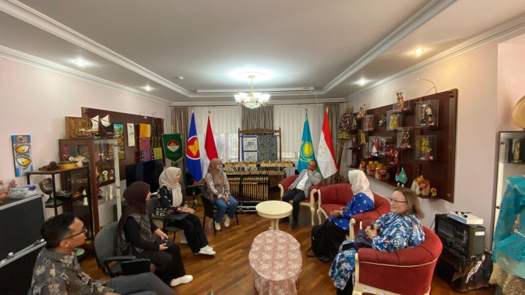 Kunjungan rombongan dari UMSIDA ke KBRI sebenarnya berawal dari keinginan sederhana, yakni kenalan dengan sesama WNI” di Kazakhstan. Sebagai peserta program pertukaran mahasiswa, Arum menyampaikan bahwa ia ingin punya koneksi dengan komunitas Indonesia di Kazakhstan. Ia berharap, apabila ia mengenal lebih banyak orang Indonesia di tempat ia melaksanakan program Student Exchange tersebut, mereka bisa saling membantu, bertukar cerita, atau bahkan bisa berpartisipasi untuk melakukan kegiatan bersama. Pada awalnya, mereka mendapatkan info dari Ms. Gulnur, salah satu staf yang bekerja di KBRI. Beliau mengirimkan pesan dan menawarkan agar mahasiswa UMSIDA bisa berkunjung ke KBRI. Begitu tiba di KBRI Kazakhstan, Arum memberikan kesan pertamanya, “Ini tempat yang sangat Indonesia banget! Mulai dari bendera merah putih yang berkibar dengan gagah, poster-poster budaya Indonesia di dinding, sampai aroma kopi di ruang tamu yang bikin rindu rumah.” Setibanya di lokasi, staf KBRI menyambut rombongan UMSIDA dengan sangat ramah dan memperlakukan mereka layaknya keluarga. Di ruangan yang sarat nuansa tanah air itu, mereka berbincang tentang studi, kehidupan kampus di Kazakhstan, serta berbagi berbagai pengalaman menarik lainnya.