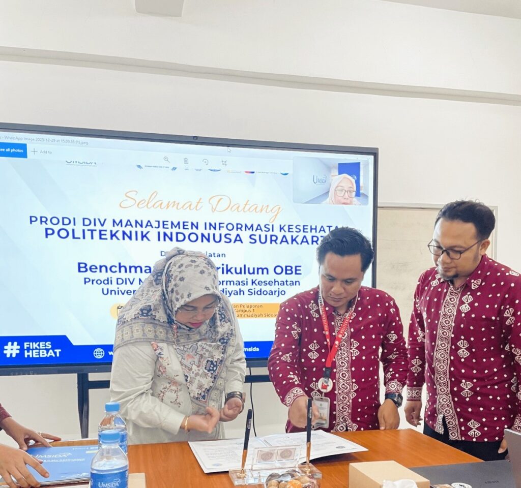 Universitas Muhammadiyah Sidoarjo (UMSIDA) menerima kunjungan Benchmarking dari Politeknik Indonusa Surakarta dalam rangka penguatan implementasi Kurikulum Outcome-Based Education (OBE). Kegiatan ini melibatkan Program Studi Manajemen Informasi Kesehatan (MIK) Fakultas Ilmu Kesehatan (FIKES) UMSIDA sebagai mitra diskusi akademik.
